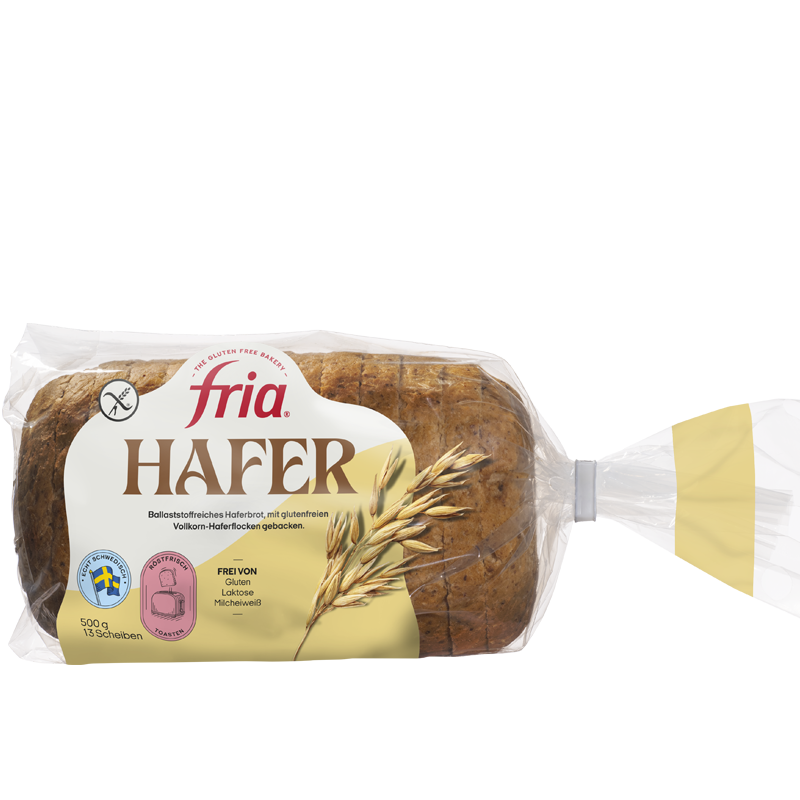 Frias Haferbrot ist ungesüßt und enthält ganze 6 % Ballaststoffe. Reiner, glutenfreier Hafer hat viele gute Eigenschaften, die ihn zu einem grundlegenden und geschätzten Bestandteil einer glutenfreien Ernährung machen. Wenn Hafer dem Brot zugesetzt wird, erhöht sich der Vollkornanteil und gleichzeitig liefert der Hafer wichtige Vitamine und Mineralstoffe. So entsteht ein Brot mit mehr Nährstoffen, besserer Sättigung und (noch) besserem Geschmack, wobei der Hafer dem Brot eine milde Note und eine angenehm runde Gesamtkomposition verleiht.