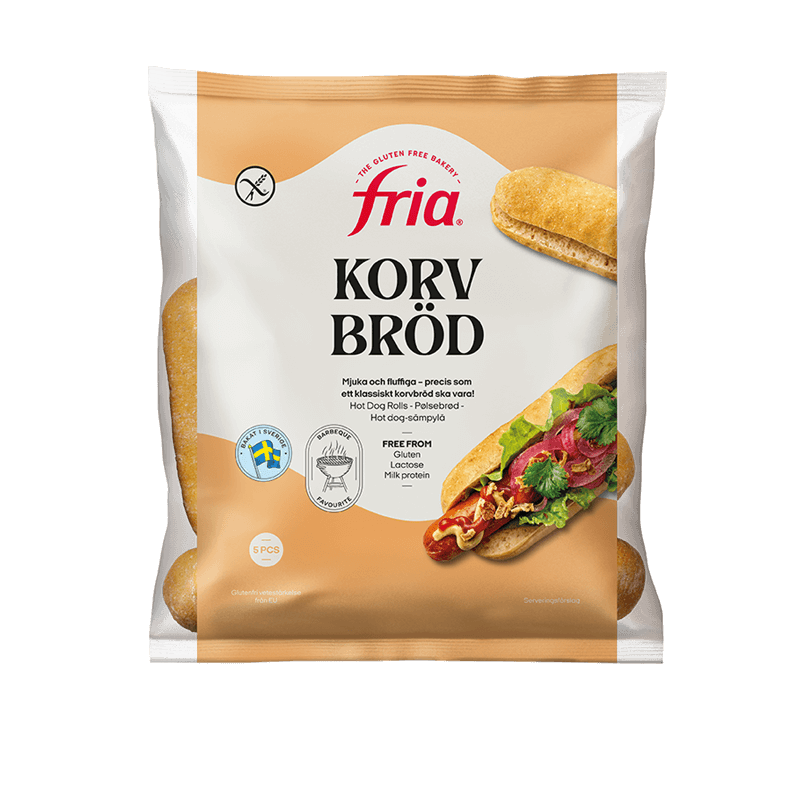 Våre glutenfrie pølsebrød er perfekte å ha i fryseren når du trenger noe raskt til grilling, en utflukt, eller hjemme på kjøkkenet. Kombiner med ditt favorittilbehør, og du får et enkelt og godt måltid. Frias glutenfrie pølsebrød er fri for laktose og melkeprotein.