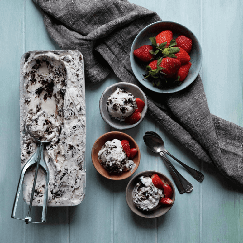Hell ismassen i en form, dekk med plastfolie og sett i fryseren til isen fryser.